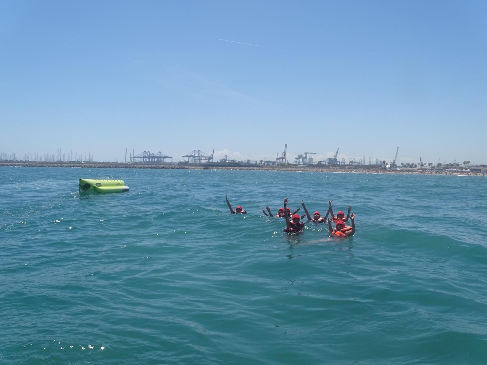 Una vez montados en la embarcación saldremos por el canal del puerto hacia mar abierto. Cuando estemos fuera del puerto llegó el momento de subirnos en la banana boat . cuando el capitán de la embarcación crea y estime oportuno comenzaremos con la actividad.